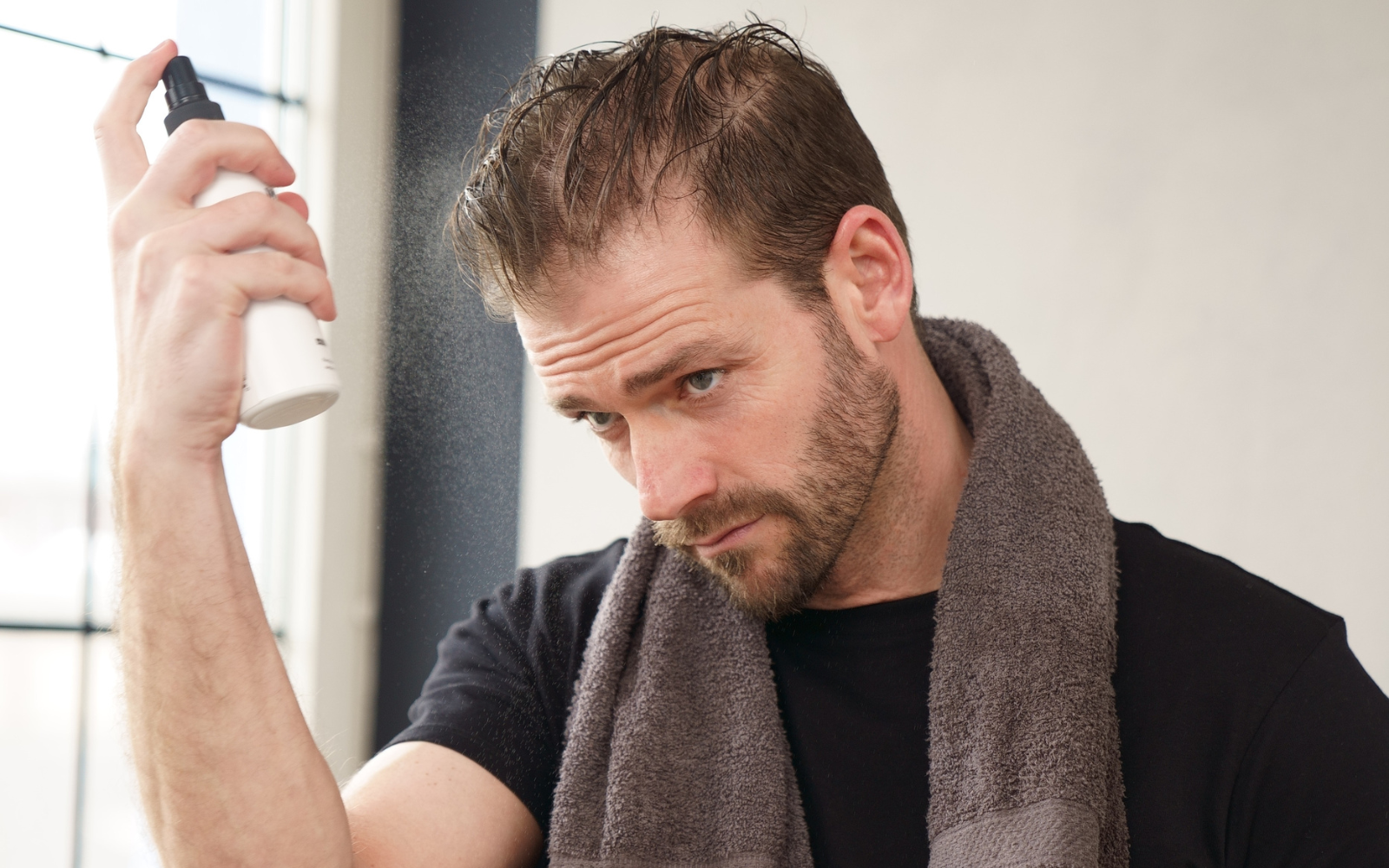 Fixiert Streuhaar und Frisur für ein starkes Finish ohne zu Verkleben