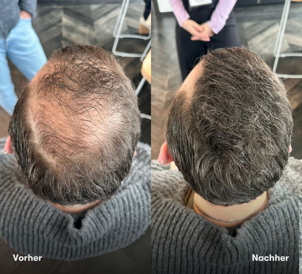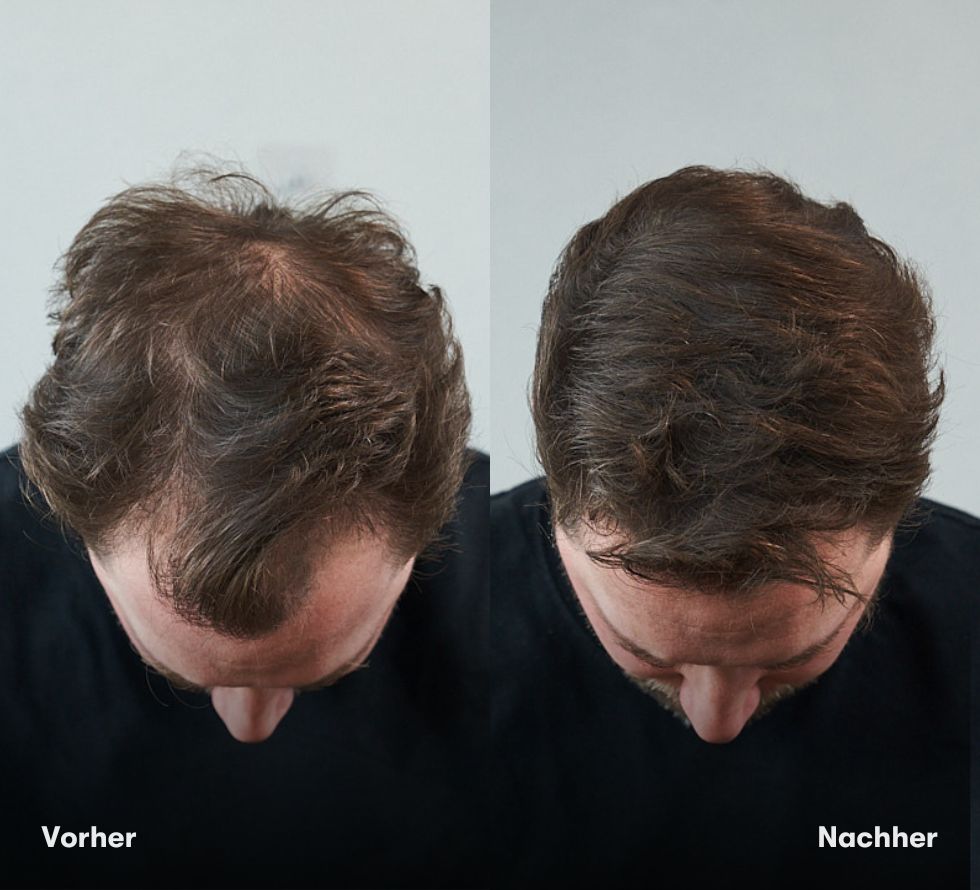 Bei der Suche nach Lösungen stößt man zunächst auf Koffein-Shampoos, Tabletten oder Haartransplantationen. Alle Methoden haben jedoch den Nachteil eines ungewissen Ergebnisses/Wirkung und langer Wartezeit.