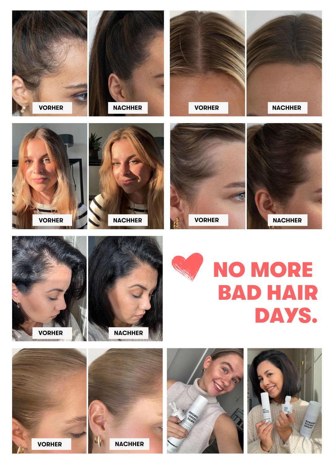 Ob kleines oder großes Problem, die Zufriedenheit mit unseren Haaren trägt nachweislich extrem zum Wohlbefinden bei. Graue Haare, lichte Stellen im Zopf, wenig Volumen oder diffuser Haarverlust. Unsere Produkte bieten dir zum fairen Preis echte Lösungen mit denen du dich rundum wohl fühlen kannst. Das Ergebnis ist sofort sichtbar und du bist ready für einen Good Hair Day.