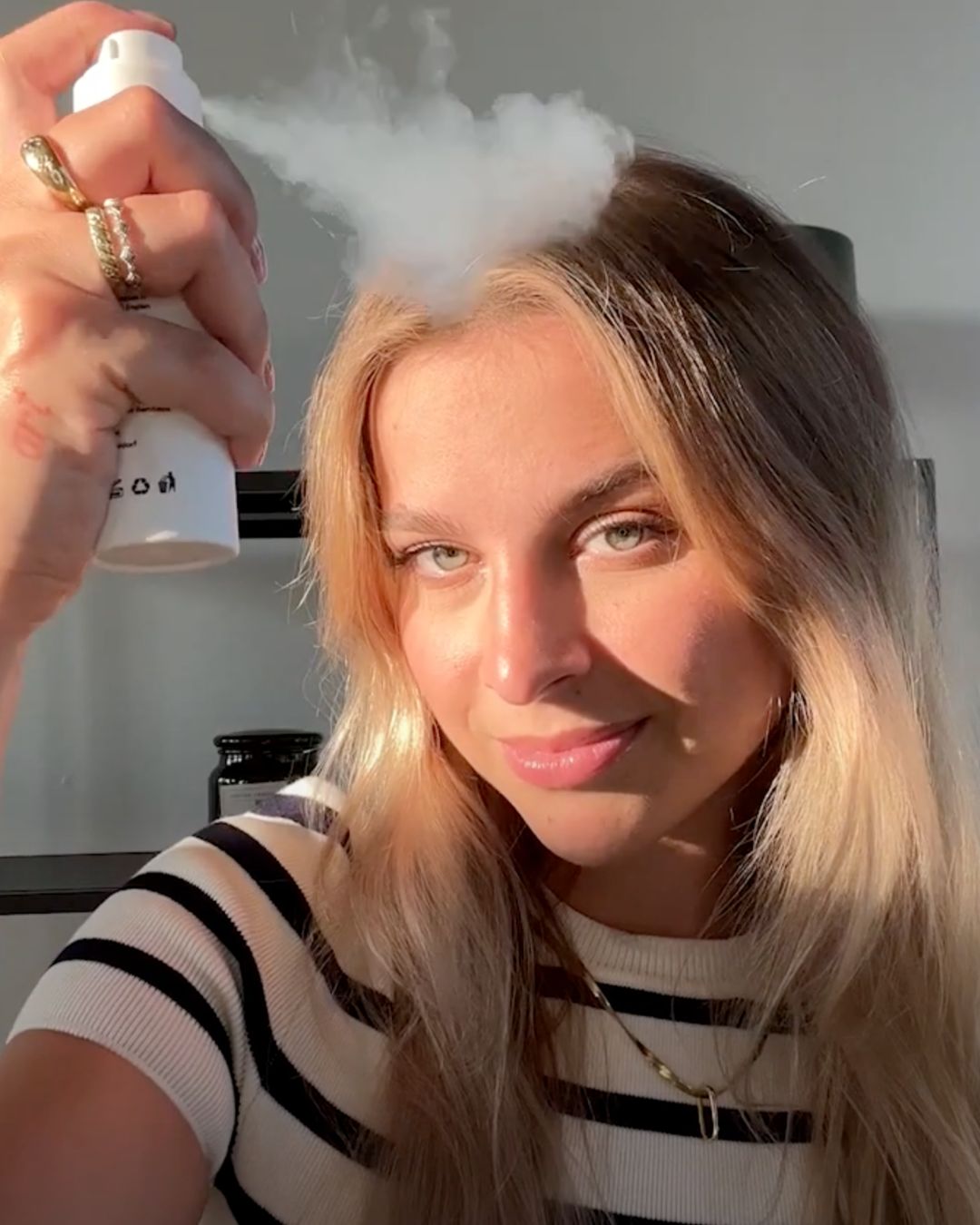 Tiara nutzt das Stylingpulver statt Trockenshampoo für mehr Volumen im Haar ohne zu föhnen.