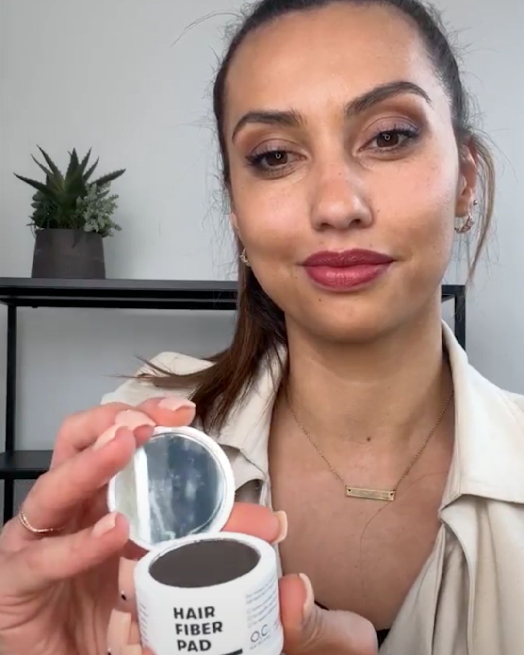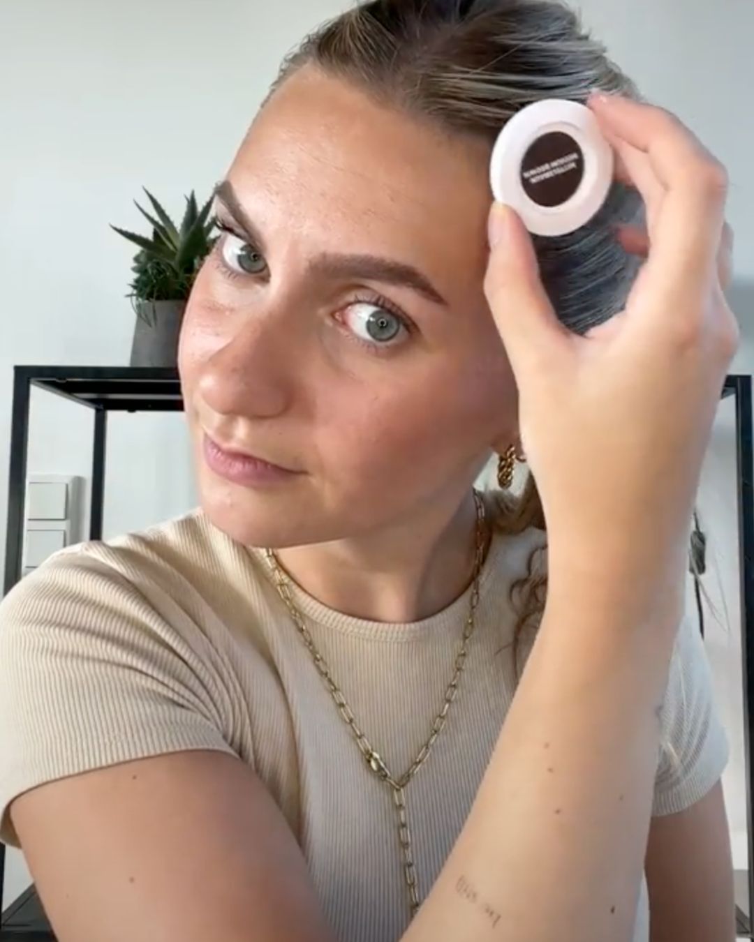 Tiara nutzt das Puder nicht nur am Ansatz, sondern häufig auch für den Mittelscheitel.