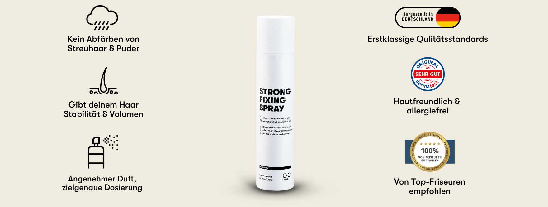 Wir haben dieses spezielle Fixierspray in unzähligen Labortests entwickelt und sind wirklich stolz auf das Prdoukt. Ganz egal, ob du damit dein Streuhaar sicher fixieren oder einfach das Volumen deiner Frisur schützen möchtest. Das Haarspray ist in jedem Falle die richtige Wahl und wir hoffen du hast genau so viel Freude dran wie wir.
