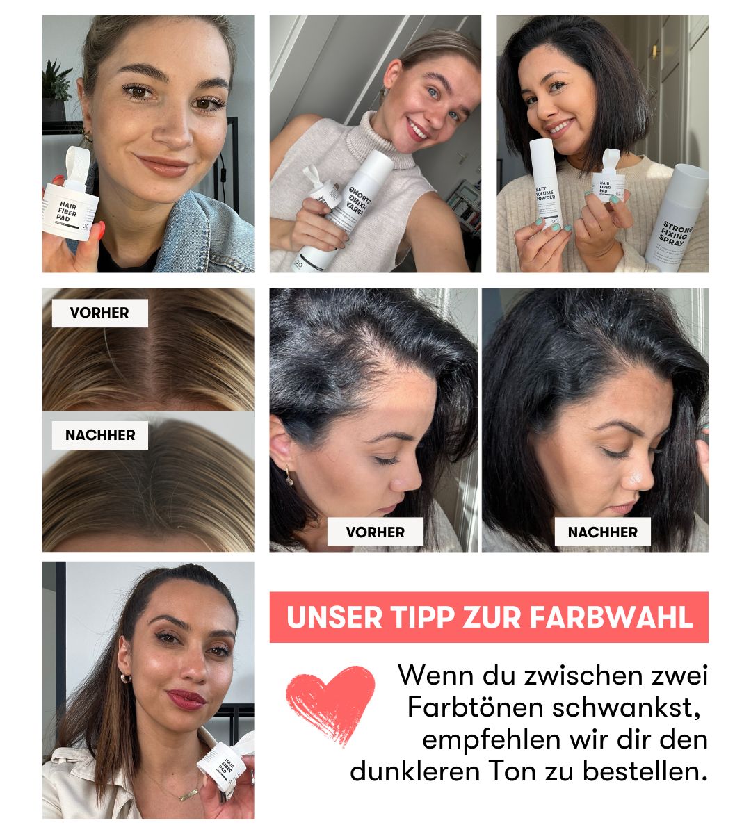 Für viele Kundinnen, die unter Haarverlust in den Wechseljahren oder genetisch bedingtem Haarausfall leiden, ist das Streuhaar eine absolute Erleichterung. Volles Haar gibt einfach ein Gefühl von Sicherheit und Vertrauen, das diese Frauen endlich wieder spüren.